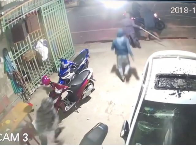 Vào thời điểm trên, có 6 đối tượng mặc áo chống nắng, đầu đội mũ bịt kín mặt đi trên 2 chiếc xe máy dừng đỗ trước cửa hàng điện thoại. Sau đó, 4 đối tượng cầm theo tuýp sắt, kiếm tự chế xông vào bên trong cửa hàng, 2 đối tượng còn lại ngồi trên 2 chiếc xe máy sẵn sàng chờ đồng bọn hành động xong rồi lên xe bỏ chạy.