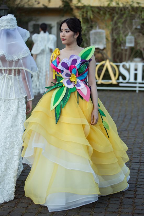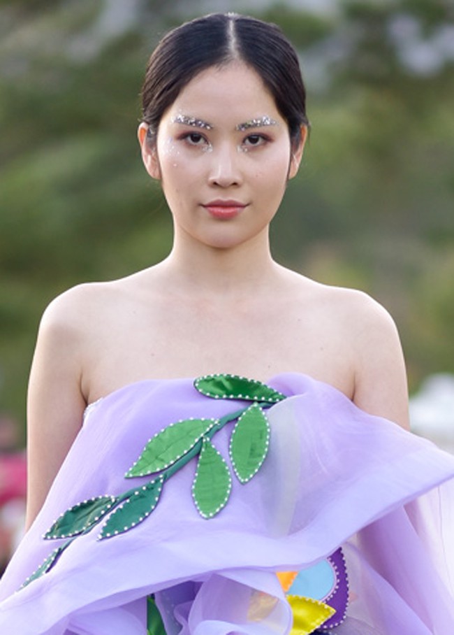 Nam Em và chị song sinh Nam Anh mặc váy hoa ton-sur-ton điệu đà xuất hiện trong show thời trang. Đây là những thiết kế nằm trong sưu tập mới nhất của Hằng Nguyễn. Chị em Hoa khôi từng xảy ra mâu thuẫn khi Nam Anh có người yêu đồng giới. Tuy nhiên sau nhiều biến cố, hai chị em dần cảm thông, làm hòa và chia sẻ, động viên nhau vượt qua sóng gió.