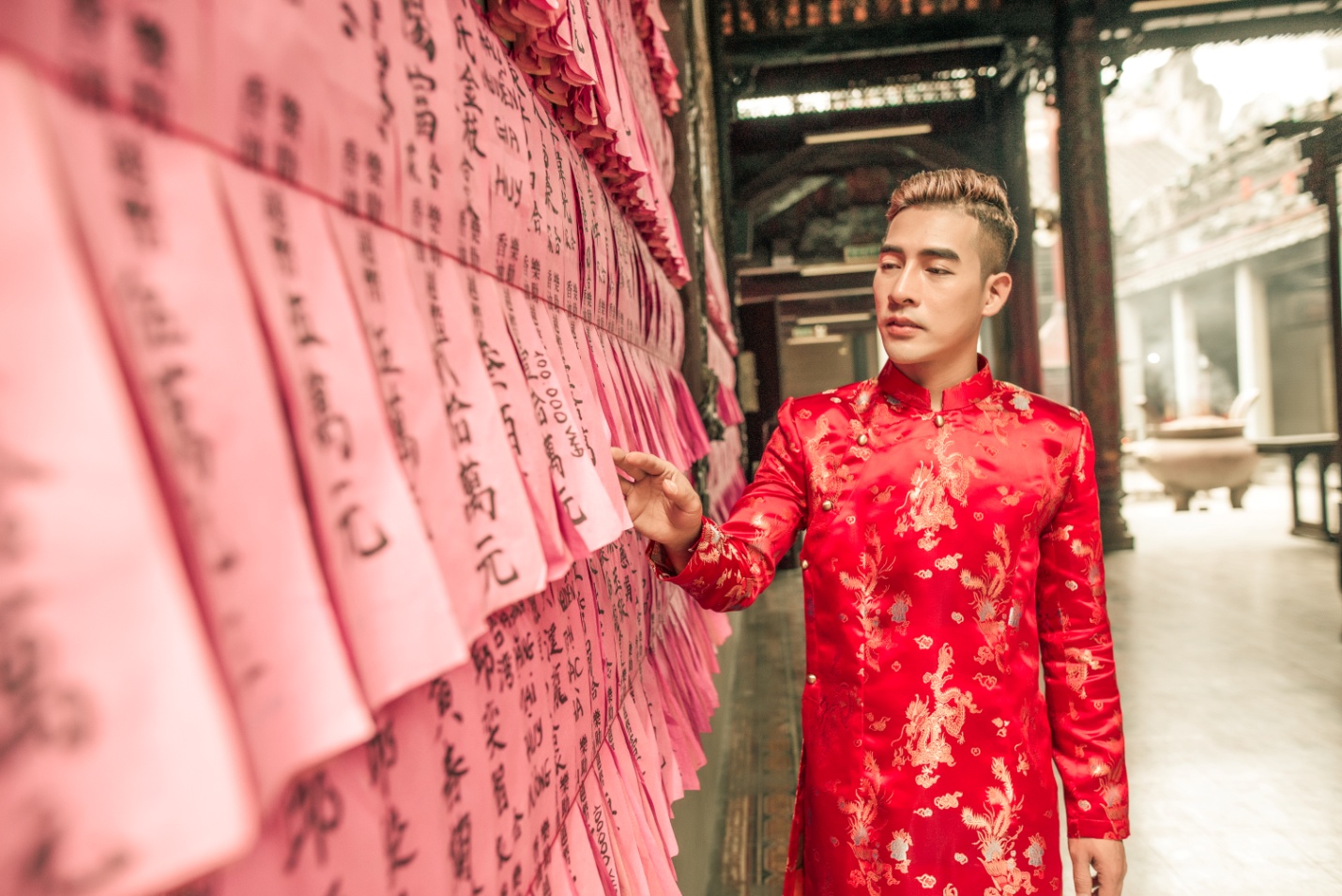Tết Nguyên Đán là điểm giao thời giữa năm cũ và năm mới; giữa một chu kỳ vận hành của đất trời, vạn vật cỏ cây. Tết Nguyên đán là thời khắc thiêng liêng, cao quý và trang trọng nhất đối với người Việt chúng ta. Nó chứa đựng cả quan niệm sống cũng như những phong tục, tín ngưỡng mang đậm nét văn hoá dân tộc vừa sâu sắc lại vừa độc đáo, phản ánh tinh thần hoà điệu giữa con người và thiên nhiên. Trong không khí đất trời đang vào xuân và người người nhà nhà tất bật chuẩn bị để đón năm mới thì Johnny Nam Kiệt – Giám đốc Công ty TNHH Lý Gia, tân Nam vương ngành làm đẹp Việt Nam cũng dành thời gian đi lễ chùa Bà Thiên Hậu nhân dịp chuyến công tác đầu năm tới mảnh đất Phương Nam và cũng không quên ghi lại những hình ảnh đẹp của anh giữa không gian linh thiêng của ngôi chùa trong tiết trời chuyển giao.