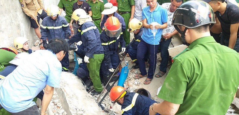 Làm việc tại thời điểm này có 2 người, 1 người nhanh chân chạy thoát được ra ngoài, còn anh Th. đã bị các khối bê tông đè lên, vùi lấp.