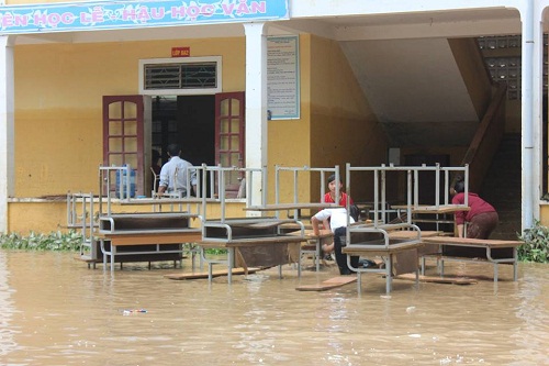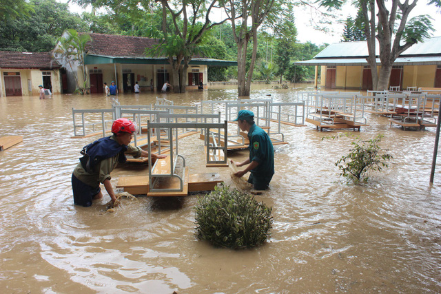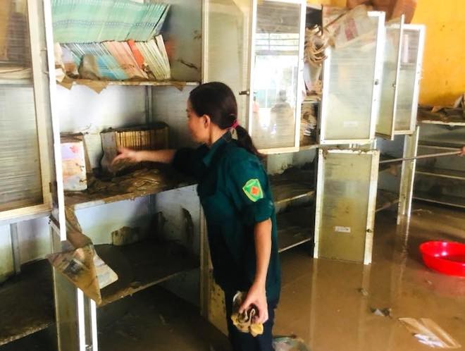 Do cơn lũ đến nhanh và bất ngờ khiến các thầy cô giáo không kịp di dời tài sản ra ngoài. Rất nhiều sách vở, giáo án cùng các tài liệu bị ngập trong bùn và nước lũ. Hiện tại nước lũ đang rút, người dân, chính quyền địa phương cùng các thầy cô đang tiến hành dọn dẹp bùn đất, bàn ghế nhưng vẫn không thể kịp cho các học sinh tựu trường.
