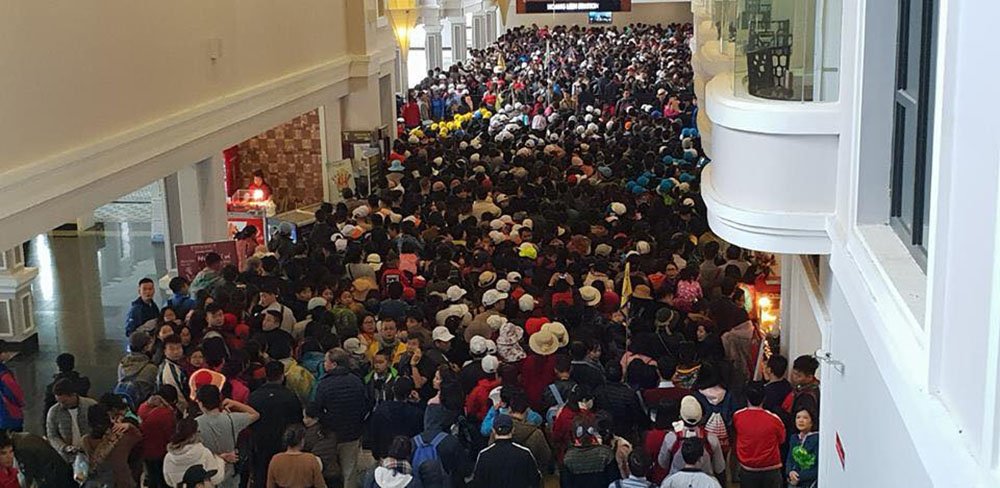 Hàng nghìn du khách đổ về ga cáp treo Sa Pa để lên tham quan nóc nhà Đông Dương khiến khu vực này nhanh chóng trở nên đông đúc. Càng về trưa, lượng khách càng đông. Hệ thống cáp treo có khả năng vận chuyển 2.000 người mỗi giờ cũng không đủ đáp ứng nhu cầu. Hành khách phải chờ đợi trên cả tiếng đồng hồ vẫn chưa đến lượt.