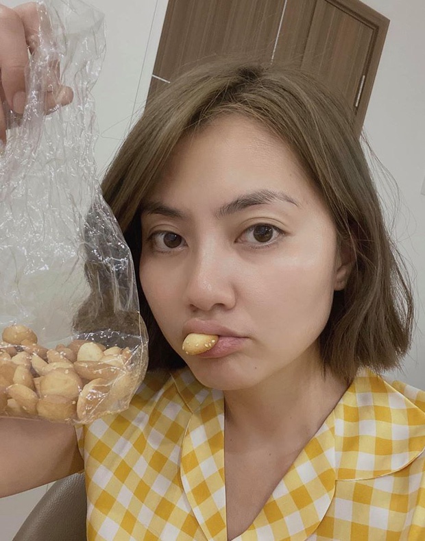 Mới đây, trên trang cá nhân Ngọc Lan đã chia sẻ ảnh để mặt mộc và tạo dáng hài hước. Trong ảnh, nữ diễn viên cầm một túi bánh và tiết lộ đang làm trái quy định của bác sĩ.
