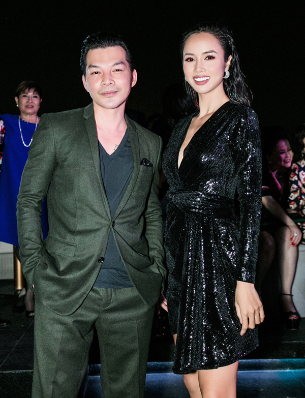 Diễn viên Trần Bảo Sơn mặc lịch lãm chụp ảnh cùng người đẹp Vũ Ngọc Anh.