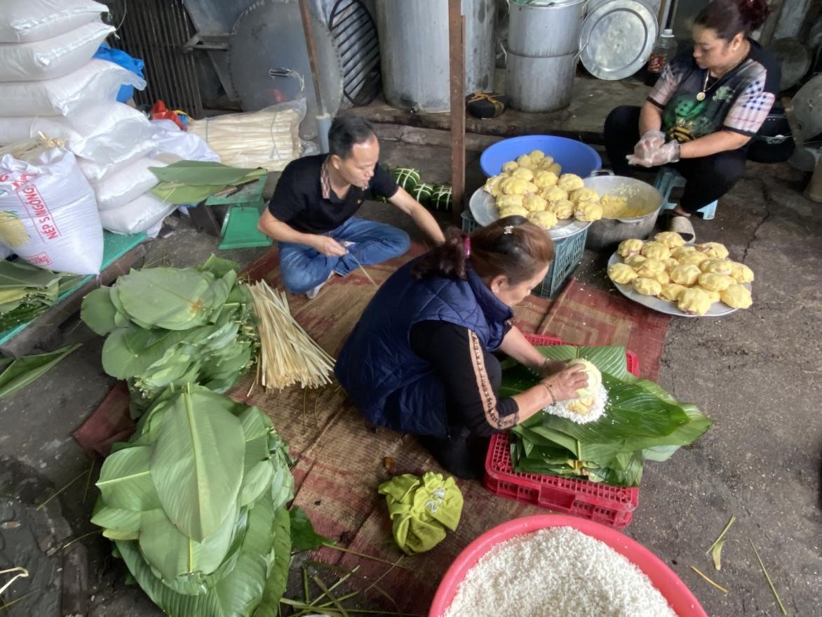Men theo đê Hữu Hồng đến với Làng Tranh Khúc trong buổi sáng sớm mùa đông ngày cận Tết, ngay từ cổng làng chúng tôi đã ngửi thấy mùi bánh chưng thơm phức len lỏi khắp các đường làng ngõ xóm. Từ đầu làng đến cuối làng, người xe đi lại nhộn nhịp như nhắc nhở Tết đã đến rất gần. Những chiếc xe thồ chở đầy gạo, đỗ xanh, lá dong cùng những chiếc xe của thương lái từ khắp các nơi đổ về đỗ tấp nập một vùng quê. Trò chuyện với chúng tôi, bà Lý Thị Thiệp, trưởng thôn Tranh Khúc cho biết, nghề truyền thống này đã có từ rất lâu, rất lâu về trước, không biết cụ thể có từ bao giờ, chỉ biết từ thời các cụ, các ông bà, cha mẹ sinh ra đã có, cứ như vậy, đời sau kế nghiệp đời trước, nghề nhiều lúc bấp bênh nhưng chưa bao giờ mất đi. Hiện nay, cả làng Tranh Khúc còn có khoảng 60 hộ còn làm bánh chưng, phân bố rải rác chứ không theo một thôn xóm nào nhất định, vì thế đi đến đâu cũng thấy mùi bánh phảng phất. Mấy năm trở lại đây, khi các công ty xí nghiệp phát triển mạnh, người trẻ trong làng cũng theo vào những công xưởng lớn làm việc, hầu hết người còn gắn bó với nghề làm bánh chưng là những thợ lành nghề. Nhất là trong thời kỳ đại dịch COVID-19 hoành hành, nguyên vật liệu nhập về khó khăn, sản xuất gián đoạn, các mối buôn cũng ít tìm đến, nhiều gia đình đã phải quyết định dừng lại cái nghề đã gắn bó nhiều năm. Tuy nhiên, thương hiệu bánh chưng làng Tranh Khúc không vì vậy mà chững lại, mà còn được đưa tới những vùng miền xa xôi của Tổ quốc, từ Bắc vào Nam, thậm chí còn xuất khẩu ra nước ngoài.