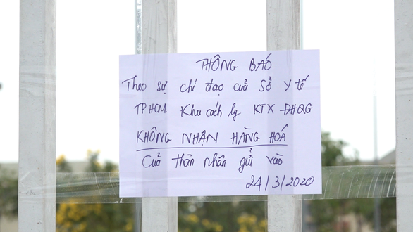 Mới đây, ngày 24/3 khu cách ly ở ký túc xá Đại học Quốc gia TP. HCM đã đưa ra thông báo: “Khu cách ly không tiếp nhận nhu yếu phẩm từ người nhà, mọi nhu cầu thiết yếu là do thành phố lo liệu”.