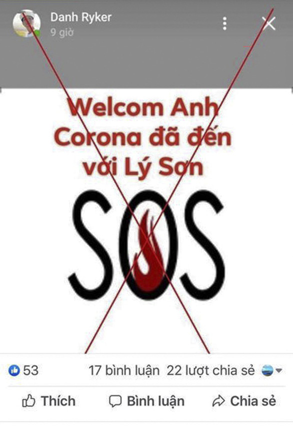 Cụ thể, ngày 7/2, Trần Văn Danh sử dụng tài khoản facebook đăng tải dòng trạng thái: "Welcom Anh corona đã đến với Lý Sơn" (Chào mừng anh corona đến với Lý Sơn). Trong thời gian ngắn, hơn 4.000 lượt xem và hàng chục lượt chia sẻ thông tin. Điều này không những gây hoang mang, bất an trong dư luận về dịch bệnh nCoV mà còn ảnh hưởng lớn đến môi trường du lịch biển đảo nơi đây.