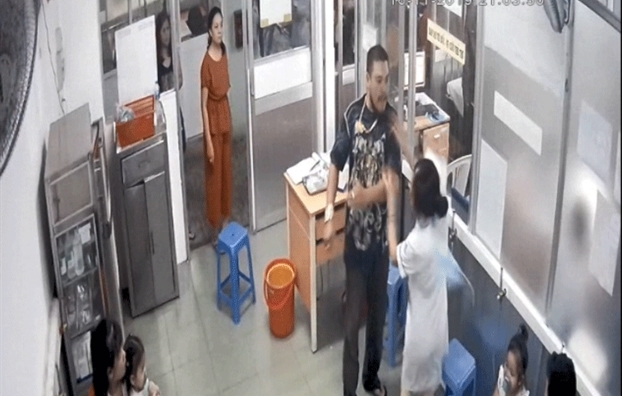 Thế nhưng, một người đàn ông cao lớn được cho là ba của bé L. đã tiến đến tát rất mạnh vào mặt điều dưỡng H. khiến cô choáng váng, lùi vài bước ra sau, rớt chiếc mũ của nhân viên y tế đang đội xuống đất.
