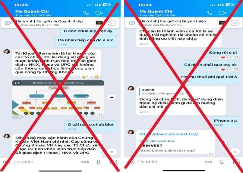 Đối tượng cho biết đây là tài khoản của các tổ chức, “đội lái” sử dụng và khớp lệnh trực tiếp với sở giao dịch HNX, HOSE mà không cần thông qua công ty chứng khoán). Vì vậy, người đầu tư không lo mất phí và được hướng dẫn đầu tư chắc chắn có lãi. Đây là những lời mời chào hấp dẫn do các đối tượng “vẽ” ra, được lên sẵn kịch bản để lấy lòng tin của những người chưa nắm rõ về đầu tư chứng khoán.