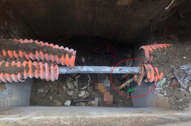 Tại hiện trường, tay của thi thể nằm lộ thiên nhưng phần thân và chân còn mắc kẹt dưới cống. Các đơn vị liên quan dùng máy phá bê tông miệng cống để đưa thi thể lên. Gần 20h tối 4/5, toàn bộ thi thể của nạn nhân được đưa lên khỏi cống.