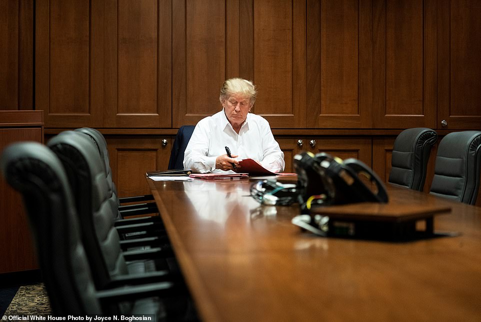 Tối 3/10, Nhà Trắng đã đăng tải những hình ảnh mới nhất của Tổng thống Mỹ Donald Trump trong khu điều trị đặc biệt tại Bệnh viện Quân Y Walter Reed. Theo đó, tình hình sức khỏe của ông chủ Nhà Trắng được cho là có nhiều tiến triển tích cực và ông đã có thể tiếp tục các công việc thường ngày của mình.