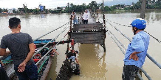 Người dân địa phương phát hiện, liền đến cứu. Ba chiếc xe máy lần lượt được trục vớt. "Sau tiếng rầm lớn, tôi thấy nhiều người kêu cứu dưới nước. May mắn nước sông khá cạn nên không ai bị thương", nhân chứng nói.