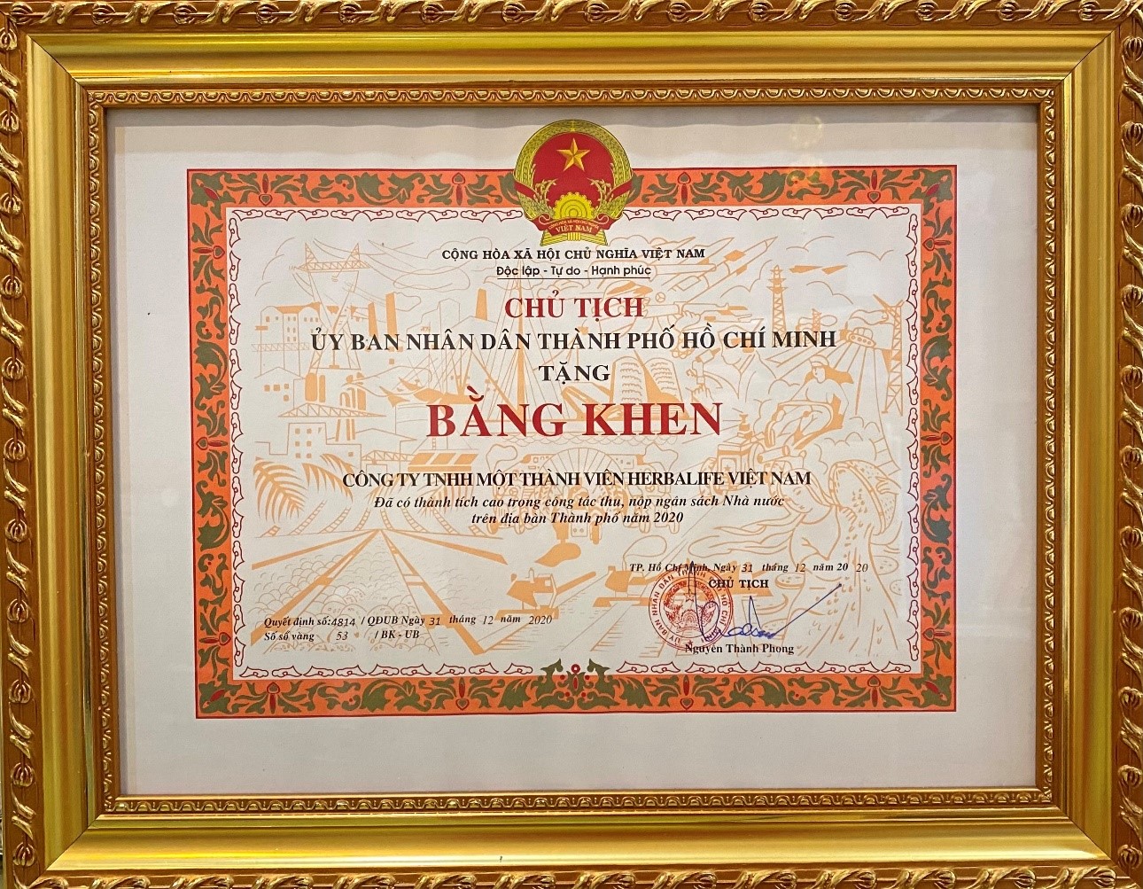 Ngày 09/12/2021, Herbalife Việt Nam tiếp tục được vinh danh tốp 100 doanh nghiệp bền vững tại Việt Nam 2021 theo đánh giá của VCCI. Giải thưởng này nhằm tôn vinh các doanh nghiệp tăng trưởng bền vững và có những đóng góp tích cực cho cuộc sống của cộng đồng, cũng như nâng cao lợi thế cạnh tranh trong bối cảnh toàn cầu hóa.