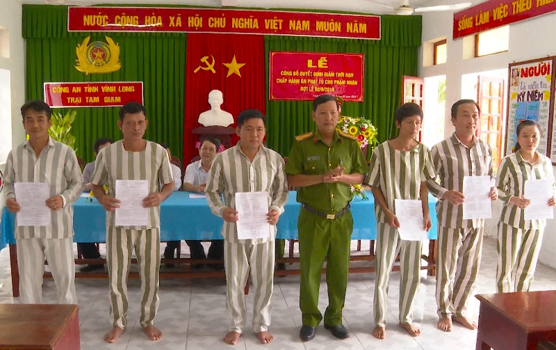 Theo đó, những phạm nhân này đang chấp hành án phạt tù tại Trại giam Công an tỉnh Vĩnh Long và Nhà tạm giữ Công an các huyện, thị xã, thành phố của tỉnh Vĩnh Long có ý thức cải tạo tốt, tích cực lao động, cải tạo, học tập tiến bộ, chấp hành tốt nội quy, quy chế nên được giảm thời hạn chấp hành án phạt tù.