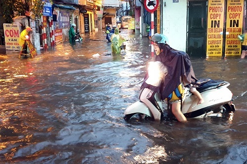Chỉ sau khoảng 30 phút mưa lớn, phố Vĩnh Hưng (quận Hoàng Mai) ngập hơn 50 cm khiến một số phương tiện chết máy. Các tuyến phố khác như Nguyễn Khuyến (Đống Đa), Lý Thường Kiệt (Hoàn Kiếm) ngập sâu từ 30 đến 40 cm; phố Trần Bình, Hoa Bằng (Cầu Giấy) ngập khoảng 30 cm.