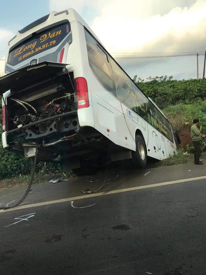 Cùng lúc này, xe khách giường nằm BKS: 47D - 025.47 đang lưu thông theo hướng TP.Đà Lạt - TP.HCM. Khi đi đến khu vực trên, do phát hiện muộn việc ô tô 7 chỗ và nhiều người đang tập trung trên đường, nên tài xế xe khách đã đánh lái tránh. Do đó, chiếc xe khách lao khỏi mặt đường và lật xuống khe nước. May mắn những người trên xe khách không bị thương.