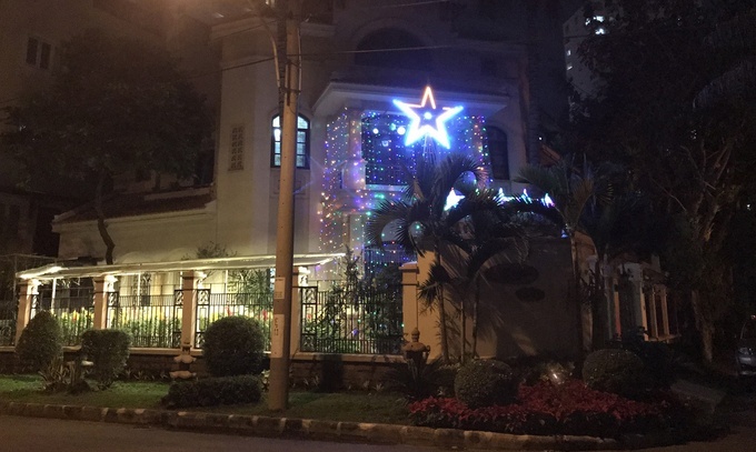Chỉ chăng đèn trắng trên hệ thống cây ngoài cửa, ngôi biệt thự ở khu Garden Plaza cũng đủ gây ấn tượng cho người đi đường.