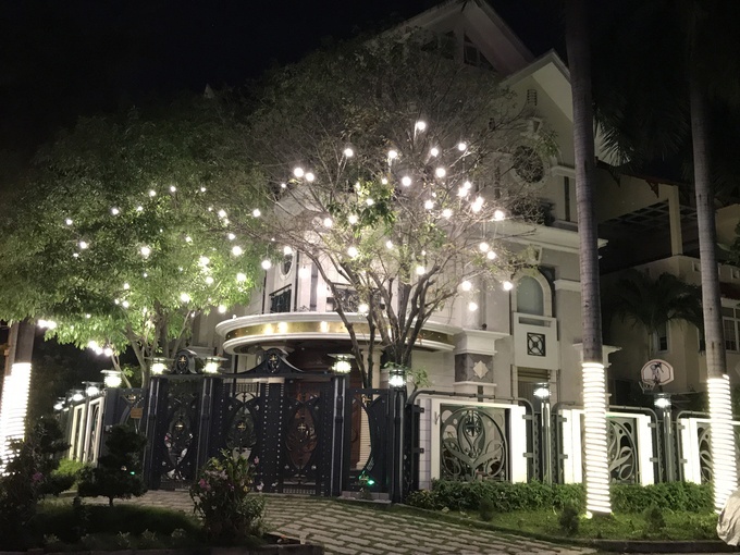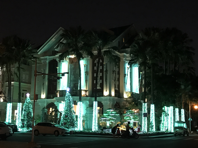 Đèn màu biến căn biệt thự nằm ở ngã ba khu Nam Thiên trở nên lung linh như lâu đài trong xứ xở nghìn lẻ một đêm.