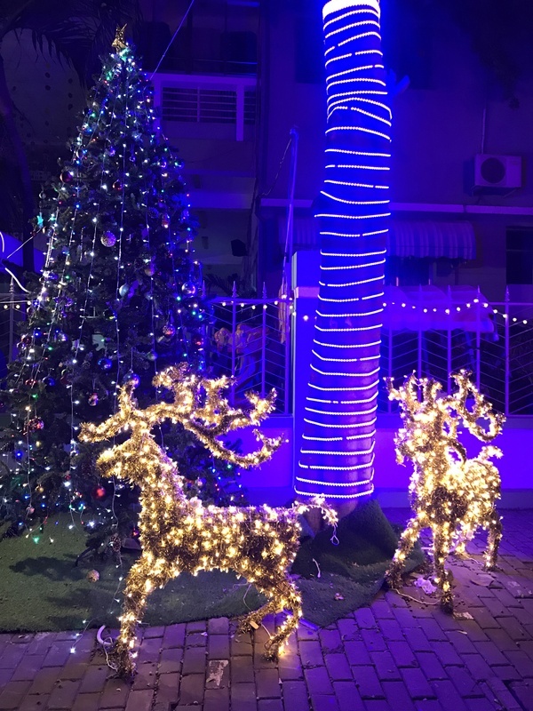 Trường mầm non trong khu cũng rực sáng ánh đèn màu đón Giáng sinh.