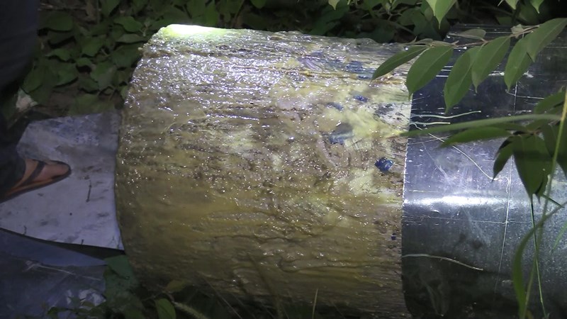 Trong quá trình khám nghiệm, công an tiếp tục cho đập bể thùng phuy nhựa thứ 2 và phát hiện thêm 1 thi thể được đổ đầy trà rồi được quấn chặt bằng xốp, dán silicon và đổ bê tông trong một thùng phuy.