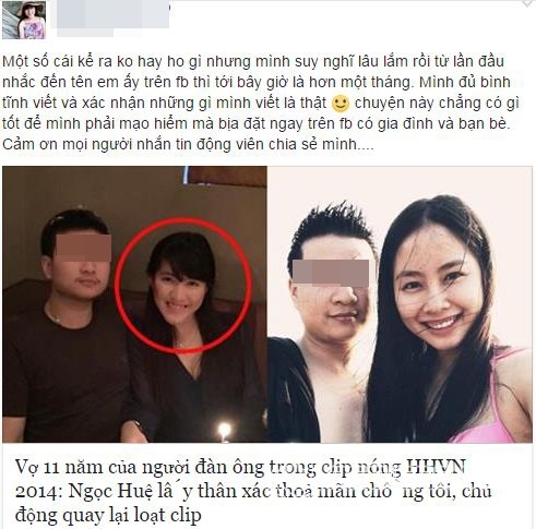 Một tài khoản facebook có tên K.T.L tiết lộ Võ Hồng Ngọc Huệ là "người thứ ba" khiến cuộc hôn nhân giữa mình và chồng tan vỡ sau 11 năm bên nhau.
