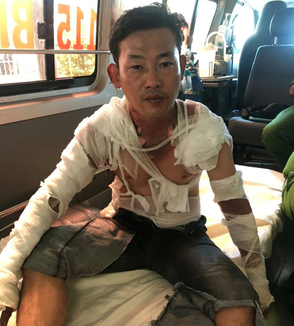 Ngọn lửa bùng phát, nóng quá Tài hoảng hốt cởi áo. Phía trên người tài bị bỏng nặng. Cùng lúc này Công an, bảo vệ và người dân đã xông vào khống chế Tài đưa về trụ sở.