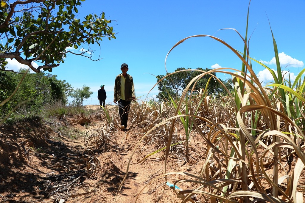 Để hiểu thêm về vấn đề này, PV đã gặp và được ông Nguyễn Hữu Mạnh Phùng (ngụ thôn Triệu Phong 2, xã Quảng Sơn, huyện Ninh Sơn) dẫn đi thực tế tại cánh đồng mía của thôn Triệu Phong.