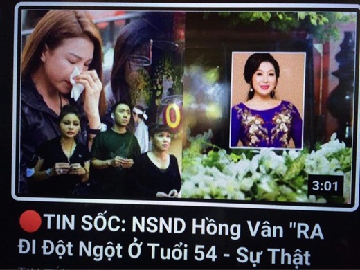 NSND Hồng Vân mới đây đã phải lên tiếng đính chính trên trang cá nhân sau khi bị tung tin đồn ác ý. Theo đó, một số kênh YouTube bất ngờ đăng tải video có tiêu đề: "NSND Hồng Vân ra đi đột ngột ở tuổi 54". Đoạn clip đưa thông tin sai sự thật này thậm chí còn thu hút gần 80.000 lượt xem.