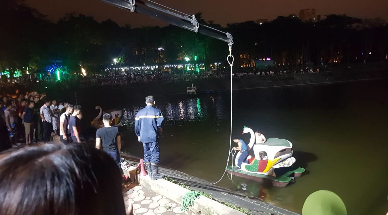 Tại hiện trường, xe cẩu của đội cứu hộ được điều tới để trục vớt chiếc xe gặp nạn. Sự việc thu hút hàng trăm người dân hiếu kỳ đến xem. Ngay sau khi nhận tin báo, đội Cứu nạn Cứu hộ chuyên nghiệp Công an thành phố Hà Nội đã có mặt để phối hợp cùng lực lượng chức năng tiến hành trục vớt chiếc xe gặp nạn.
