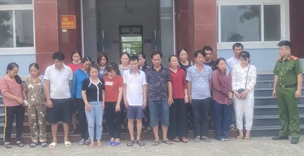 Công an nhân dân thông tin, trong số 18 đối tượng bị bắt giữ, bước đầu cơ quan điều tra xác định được 6 đối tượng cầm đầu, gồm: Vũ Đình Sâm (SN 1975), Phan Thị Tròn (SN 1972), Hồ Thị Lai (SN 1980), Lê Thị Vân (SN 1972), cùng trú tại phường Quỳnh Xuân, thị xã Hoàng Mai; Nguyễn Thị Hương (SN 1982), trú tại thị xã Tân Uyên, tỉnh Bình Dương và Tạ Quang Phong (SN 1960), trú tại xã Quỳnh Ngọc, huyện Quỳnh Lưu.