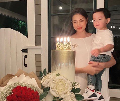 Mới đây, trên trang cá nhân, Phạm Hương chia sẻ loạt ảnh đón sinh nhật lần thứ 29 tại Mỹ. Trong ảnh người đẹp Hải Phòng diện váy trắng tinh khôi, bên cạnh là bánh kem cỡ lớn được chuẩn bị công phu và bó hoa hồng đỏ nổi bật. Khung cảnh buổi tiệc ấm cúng, lãng mạn nhưng không kém phần sang chảnh. Maximus được mẹ bế trên tay và hào hứng thổi nến sinh nhật. "Tuổi mới bình yên như vậy là đủ nhỉ?", người đẹp bày tỏ.