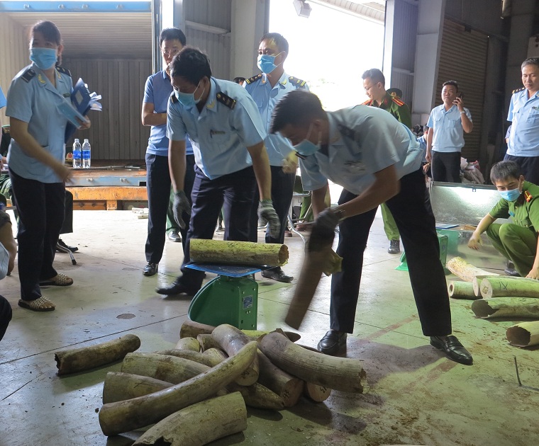 Kết quả đã phát hiện và bắt giữ một khối lượng lớn hơn 9,1 tấn hàng hóa nghi là ngà voi được cất giấu, ngụy trang tinh vi trong các thanh gỗ xẻ.