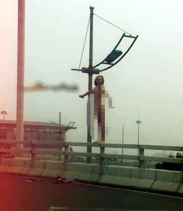 Theo một nhân chứng, thời điểm trên, nhiều người đi qua đường Võ Nguyên Giáp, khu vực gần nhà ga T2, phát hiện một cô gái trẻ bất ngờ rơi từ trên cầu vượt ngay đối diện ga T2 Nội Bài xuống đất, nằm bất động. Nạn nhân không mặc quần áo. Một số người đi đường trước đó còn ghi lại được hình ảnh nạn nhân đi trên lan can cầu vượt.