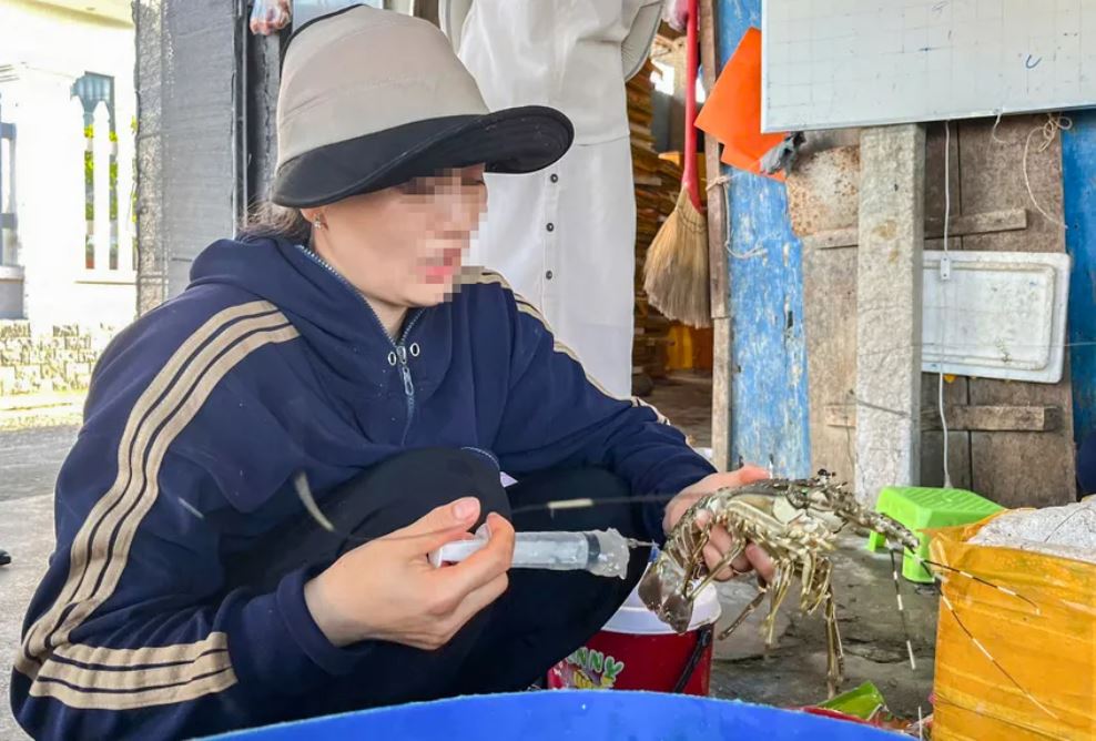Tại đây, cơ quan chức năng phát hiện bà X. đang dùng bơm tiêm để đưa tạp chất là thạch rau câu vào 45 kg tôm hùm đã chết, tổng giá trị lô hàng ước tính khoảng 22 triệu đồng.