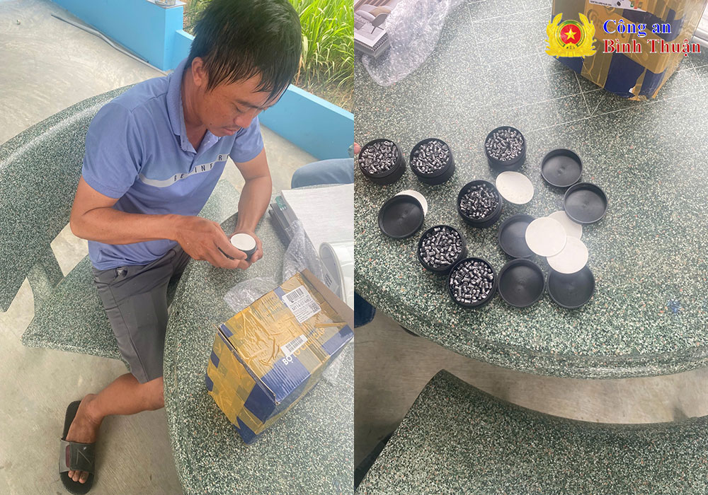 Tiếp tục phối hợp với Công an xã Nghị Đức, huyện Tánh Linh kiểm tra, phát hiện anh Phạm Huỳnh Vạn Phúc (SN 1989, trú tại thôn 7, xã Nghị Đức) đang nhận kiện hàng từ nhân viên giao hàng tại nhà của mình. Qua kiểm tra kiện hàng phát hiện có 1.443 viên đạn chì (đạn bắn chim) được đựng trong 6 hộp nhựa trước sự chứng kiến của Phúc và những người có liên quan.