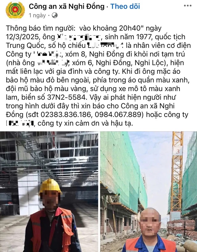 Theo Dân Việt, thi thể dạt vào bãi biển có nhiều đặc điểm nhận dạng giống với một công nhân người Trung Quốc làm việc ở xã Nghi Đồng, huyện Nghi Lộc, tỉnh Nghệ An. Người đàn ông này được thông báo mất tích trước đó.