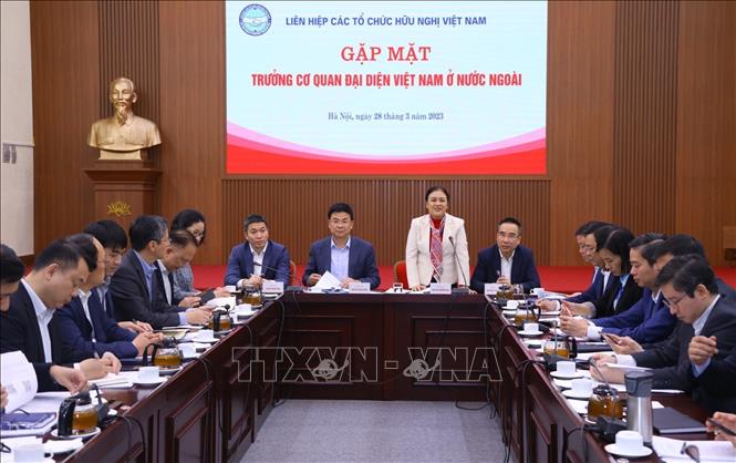 Tại buổi gặp mặt, Chủ tịch Liên hiệp các tổ chức hữu nghị Việt Nam, Đại sứ Nguyễn Phương Nga bày tỏ vui mừng được gặp, làm việc với các Đại sứ, Trưởng Đại diện Việt Nam tại nước ngoài trước nhiệm kỳ; đánh giá cao sự phối hợp chặt chẽ, tốt đẹp giữa các cơ quan đại diện tại nước ngoài với Liên hiệp các tổ chức hữu nghị Việt Nam thời gian qua, đặc biệt là trong lĩnh vực đối ngoại nhân dân.