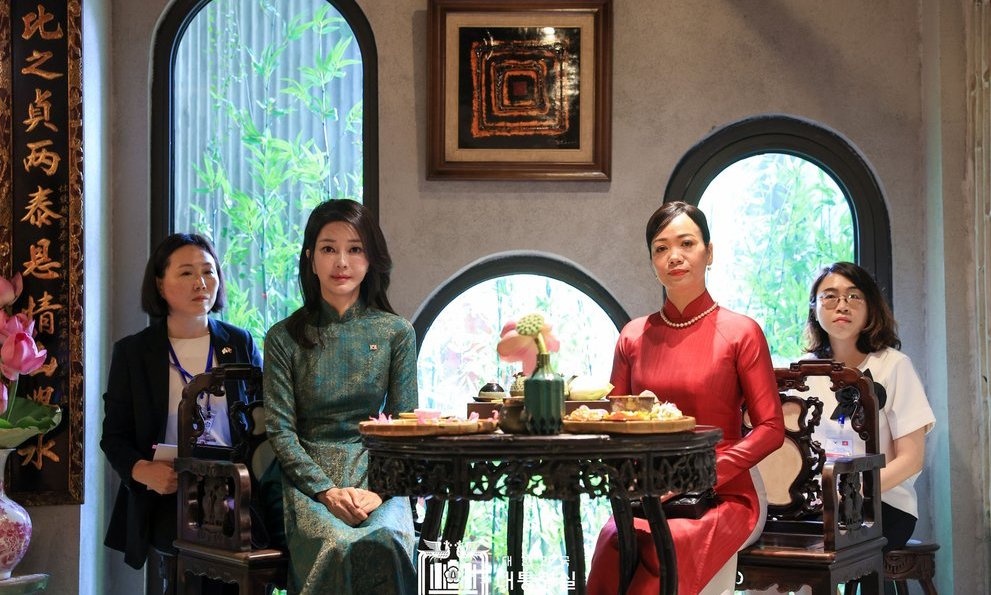 Ấy là sự kiện 2 phu nhân của 2 lãnh đạo quốc gia Hàn Quốc và Việt Nam mặc áo dài trong cuộc gặp đầu tiên trong chuyến thăm chính thức Việt Nam của tổng thống Hàn Quốc và phu nhân.