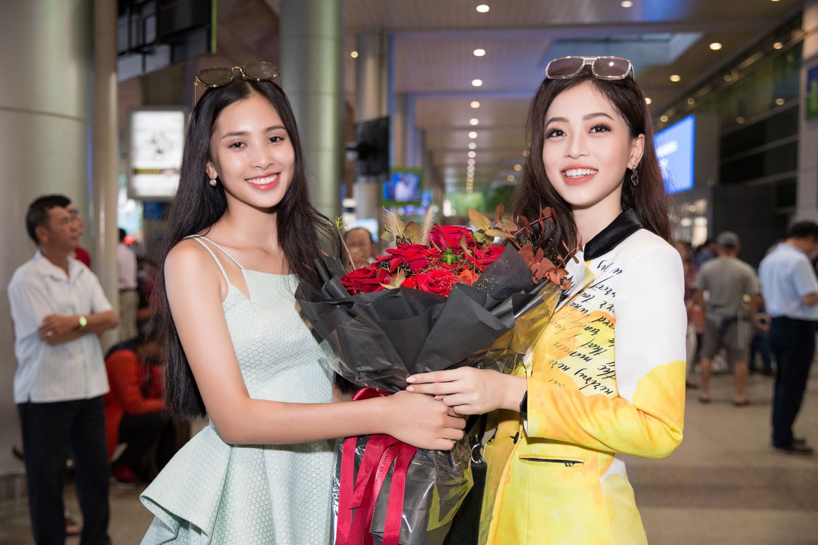 Hoa hậu Tiểu Vy vừa kết thúc buổi học của mình, cô đã nhanh chóng ra tận sân bay để chúc mừng người chị thân thiết. Dù để mặt mộc và gấp rút di chuyển nhưng Tiểu Vy không quên chuẩn bị một bó hoa tươi thắm dành tặng cho Phương Nga. Trước tình cảm của Tiểu Vy và người hâm mộ, Phương Nga không khỏi bất ngờ và xúc động.