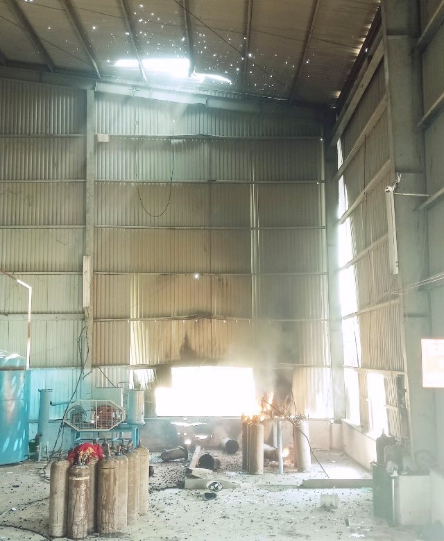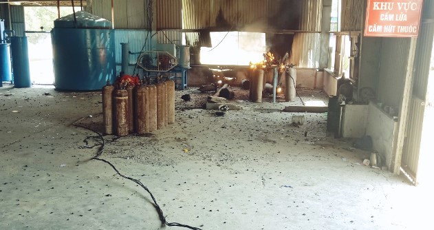 Tại hiện trường, vụ nổ làm hư hại một phần nhà xưởng và làm 13 bình gas loại 50 kg bốc cháy. Ngay sau khi vụ việc xảy ra, lực lượng PCCC Khu Kinh tế Dung Quất đã điều động lực lượng và phương tiện phong tỏa hiện trường, dập tắt đám cháy.