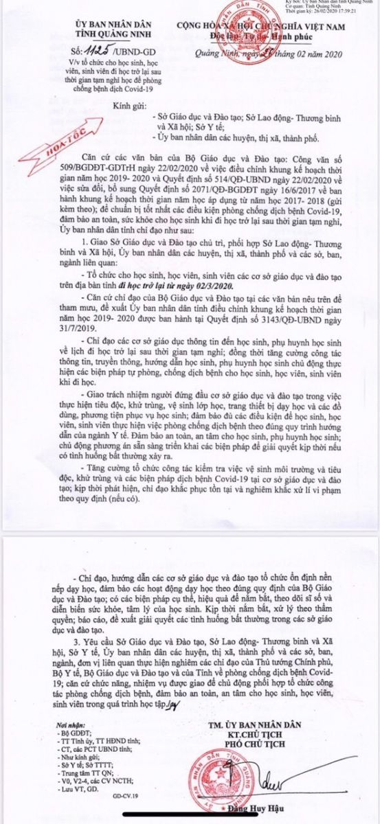 Theo đó, UBND Tỉnh giao cho Sở giáo dục và Đào tạo chủ trì, phối hợp Sở Lao động – Thương binh và Xã hội, UBND các huyện, thị xã, thành phố và các sở, ban, ngành liên quan tổ chức cho học sinh, học viên, sinh viên các cơ sở giáo dục và đào tạo trên địa bàn tỉnh đi học trở lại từ ngày 2/3.