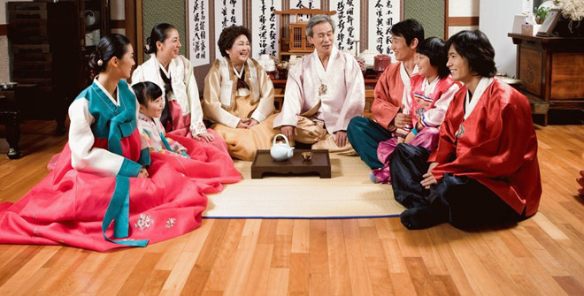 Người Hàn Quốc thường mặc Hanbok vào buổi sáng đầu tiên của năm mới. Họ tổ chức nghi lễ tưởng nhớ tổ tiên, sau đó là ăn món Dduk Gook - loại súp làm bằng gạo. Năm mới cũng là ngày lễ lớn nhất ở Hàn Quốc nên người dân xứ sở kim chi thường dành dịp này cho gia đình và người thân.
