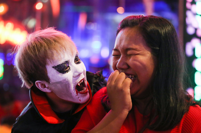 Trong đêm Halloween, từ người lớn đến trẻ nhỏ đều hào hứng hóa thân thành ma quỷ hưởng ứng theo ngày hội của phương Tây.