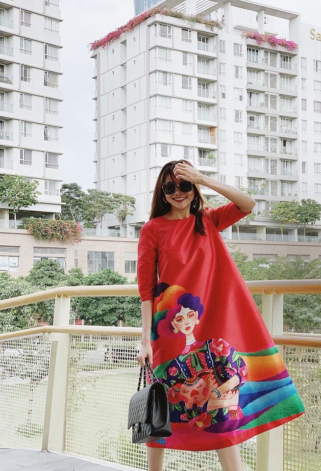 Lan Khuê diện áo dài rực rỡ như nàng thơ bên ông xã doanh nhân trong ngày mùng 1 Tết. Người đẹp khoe nhan sắc viên mãn đáng ngưỡng mộ. (Ảnh: Instagram)