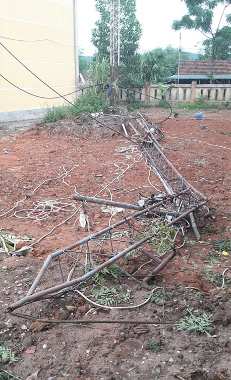 Trước đó, vào sáng cùng ngày, đội công nhân kỹ thuật của Đài PT-TH tiến hành di dời, tháo dỡ cột ăng ten phát sóng nằm trong khuôn viên trụ sở UBND xã Thanh Hoá. Cột ăng ten cao hơn 30 mét, một số thanh sắt, dây chằng néo cột bị gỉ sét, bong tróc.