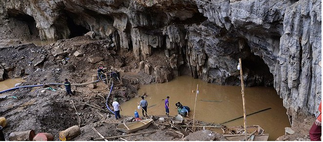 Cửa hang vàng này là núi đá tự nhiên nên không thể mở rộng để tăng cường máy móc vào trong. Trong khi đó, khu vực quanh mỏ vàng là vùng trũng, việc khơi thông dòng chảy sau khi hút bơm bùn nước ra ngoài cũng thường xuyên bị ùn ứ, tắc.