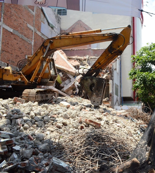 Khoảng 9h30 ngày 23/5, trong lúc 5 công nhân cùng với máy xúc đang tháo dỡ căn nhà cũ (tại ngã tư đường Trần Văn Kiểu và đường 26, P.11, Q.6, TP.HCM) thì ngôi nhà đổ sập.