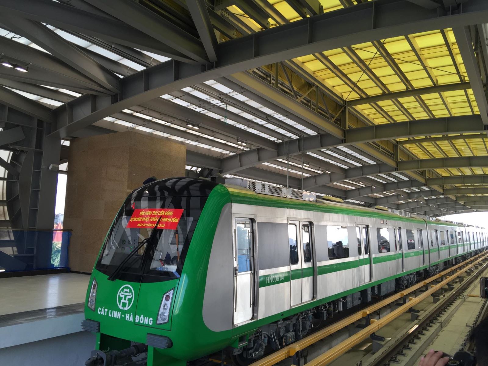 Toàn bộ 13 đoàn tàu của dự án đều chạy thử, xuất phát từ điểm đầu dự án là ga Yên Nghĩa (quận Hà Đông) đi hơn 13 km trên cao tới Cát Linh (quận Đống Đa), mỗi ga đoàn tàu dừng một phút.
