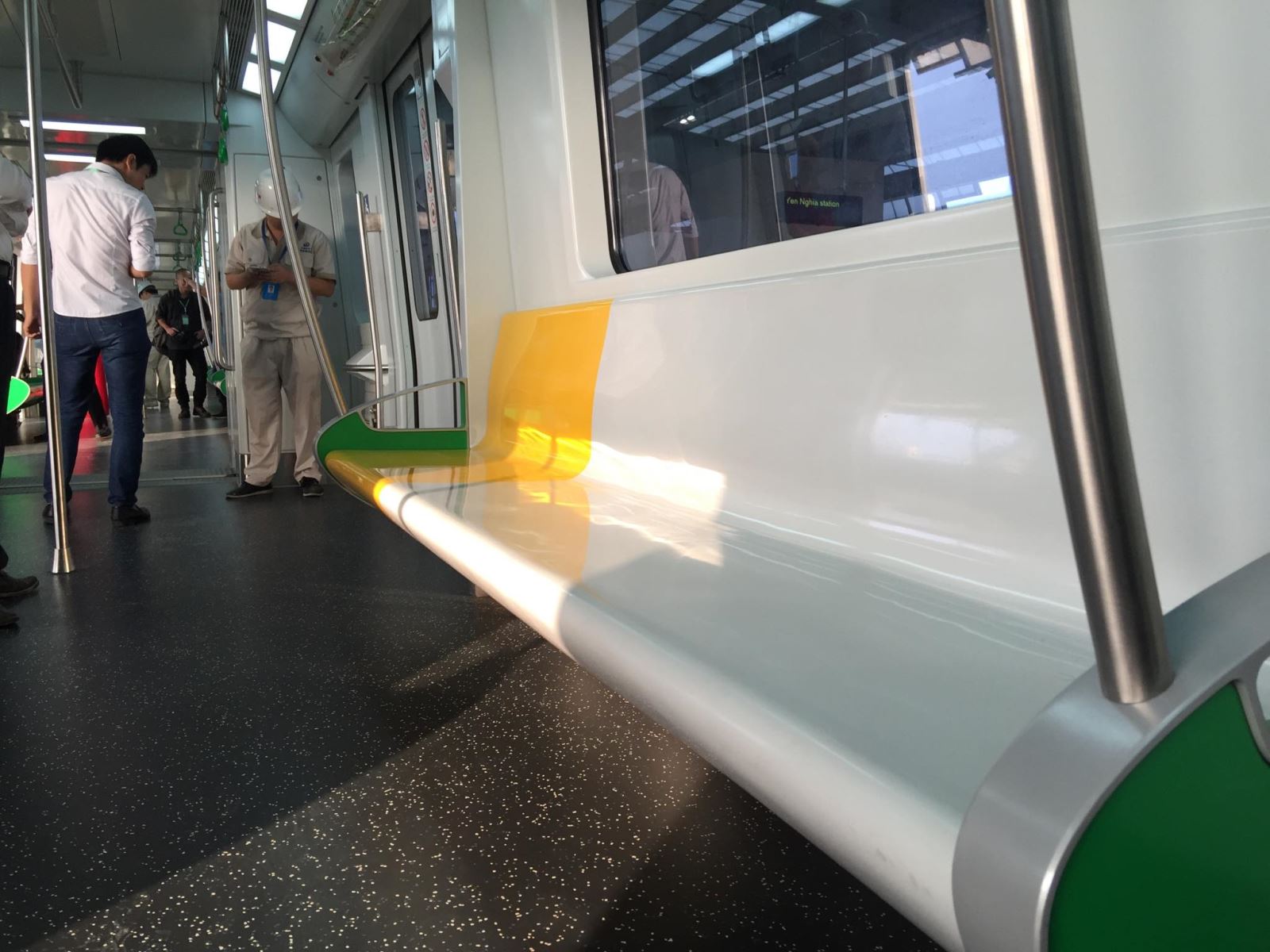 Phía bên trong tàu được trang bị nội thất hiện đại, có ghế ngồi và được trang cả hệ thống dây bám dành cho những người đứng trên tàu khi tàu vận hành, tất các hệ thống biển báo cảnh báo, hướng dẫn hành khách khi lên tàu đã được hoàn thiện...