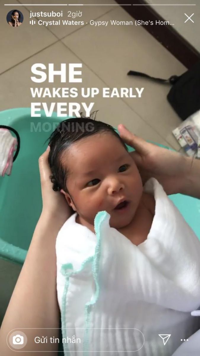Trước đó, Suboi đã có những chia sẻ cảm xúc trong lần đầu làm mẹ. Cô tâm sự: “Sáu tháng qua em hình thành và lớn dần trong đây, mẹ cũng bị ngâm trong sự thay đổi hoóc - môn cực mạnh, mệt liên tục và khóc hoài trong ba tháng đầu, rồi tự nhiên bây giờ hiểu sinh học, dinh dưỡng dễ sợ.
